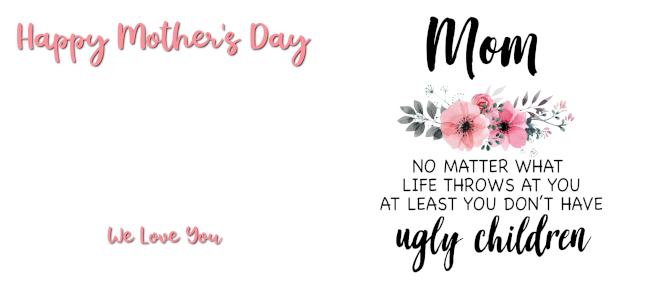 Mom - No matter what life throws at you at least you don't have ugly children.